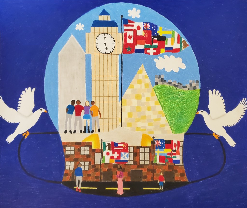 For decades, Sister Cities International (SCI) has leveraged the power of art and the written word to transform societies and transcend cultural boundaries through. The SCI Showcase has given youth around the world opportunity to express their vision for a more unified, peaceful world through original art and literature. SSCA and SCI strive to promote peace through mutual respect, understanding, and cooperation – one individual, one community at a time, and we recognize a younger generation, capable of dreaming of a human existence that is even more dynamic, more advanced, and more resilient than ever before. Scottsdale Sister Cities Association has encouraged local students to participate in this art & writing competition for 32 years. This year, more than ever, SSCA was eager to give voice to young artists and writers. As we moved through this year of uncertainty and isolation, we for unexpected pathways, filled with innovative ideas and renewed hope, and that welcomed students to share their artistic expressions of the theme “Unity in Hope”. This year, SSCA encouraged three of our Sister Cities to also submit pieces of Writing and Artwork for our local exhibit. We received artwork and writing from students in our sister cities of Alamos, Marrakech, and Kingston. YAAS Award winners were announced for each category and displayed together as our first international arts showcase.