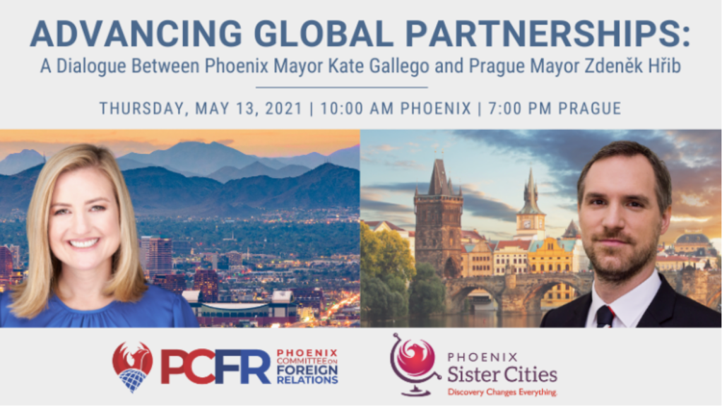 In partnership with the Phoenix Committee on Foreign Relations, Phoenix Sister cities presented a virtual dialogue between Phoenix Mayor Kate Gallego and Prague Mayor Zdeněk Hřib on May 13, 2021 to explore common issues and priorities.